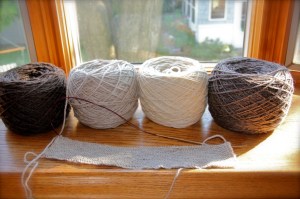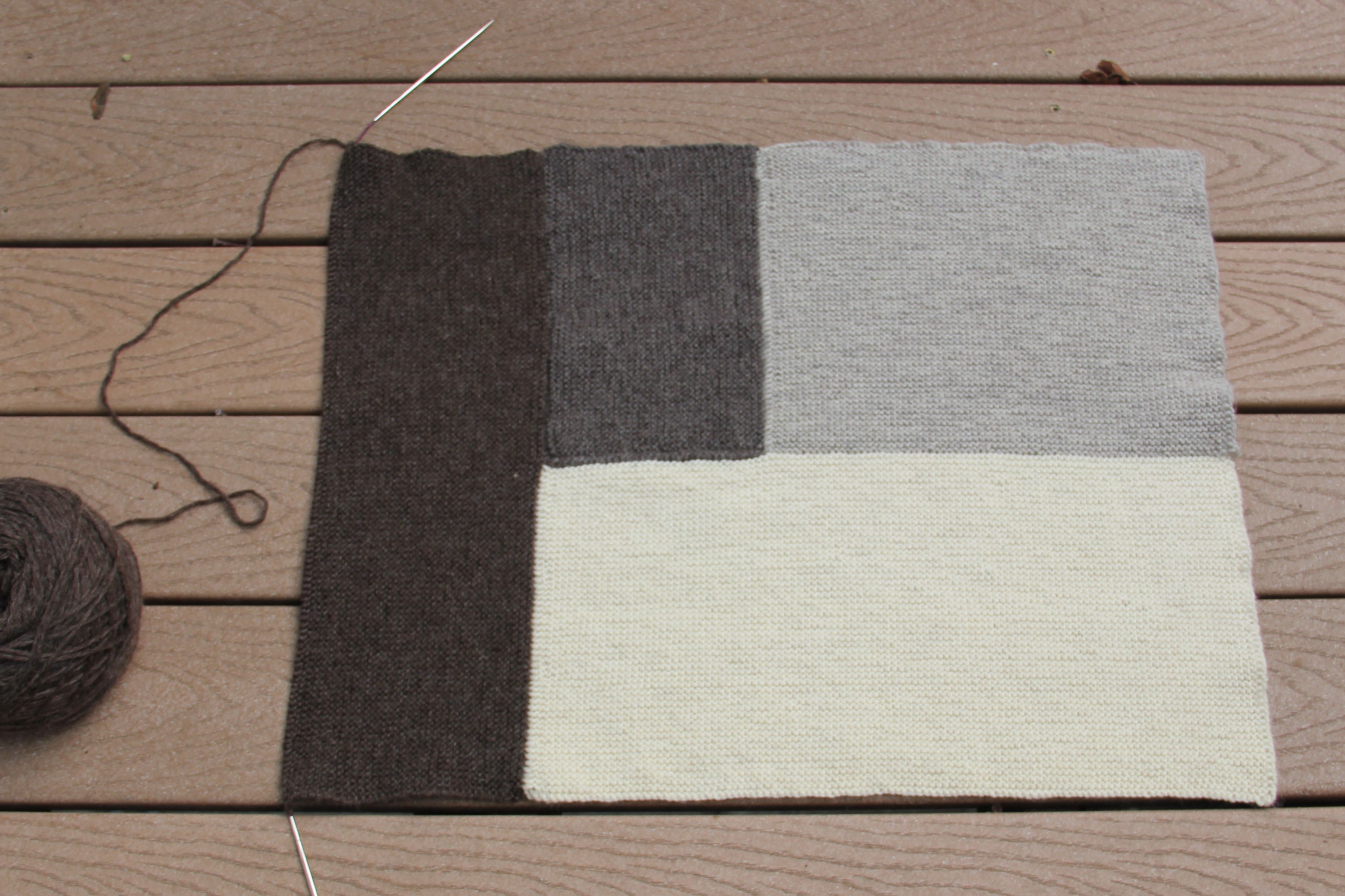 Hard choice, right? I was advised that the log cabin would be a more guy friendly, and even though, as previously mentioned, I love using intertwining cables for weddings to represent the lives coming together. In the end, it was much easier to knit endless rows of garter stitch, as I could drop my knitting to take pictures, look at the map, get snacks from the cooler, etc, and always continue my knitting without ever counting stitches or checking the pattern.