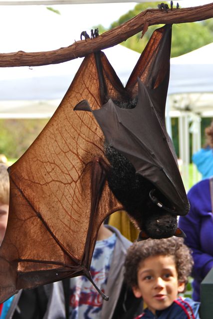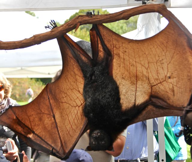 This bat had a wingspan of almost six feet! I very carefully asked about the type of bat, but have since forgot. I believe this is the Flying Fox Bat, but I may have made that up. Please let me know if you recognize her.