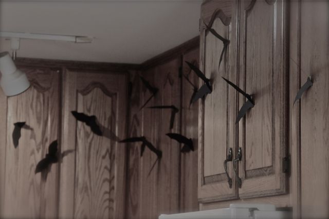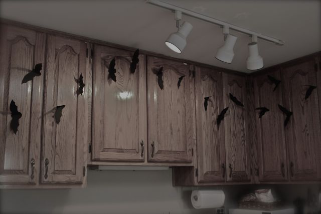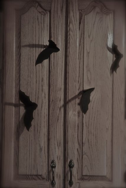 Inspired by my afternoon with the bats, and looking for some fun Halloween decoration, I saw these bats on the Made Blog. Here’s my apartment sized version: